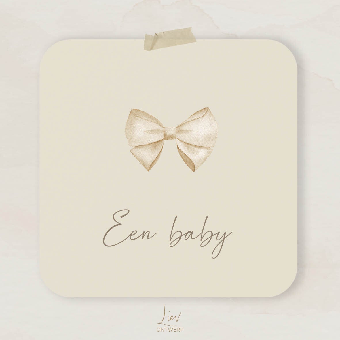 Vierkante, enkele kaart met ronde hoeken, zandkleurig papier inclusief kraft envelop.