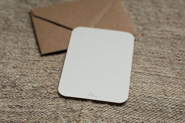 Enkele kaart met ronde hoeken, prachtig structuur papier inclusief kraft envelop.