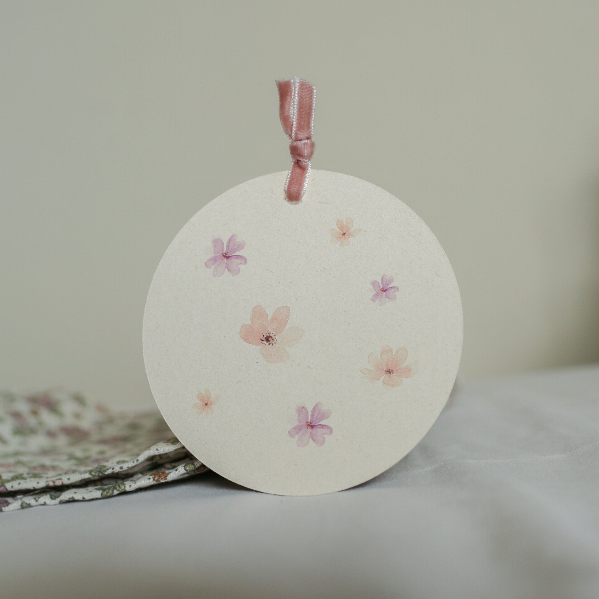 Zomerbloemetjes - Ronde kaart met fluweel lintje