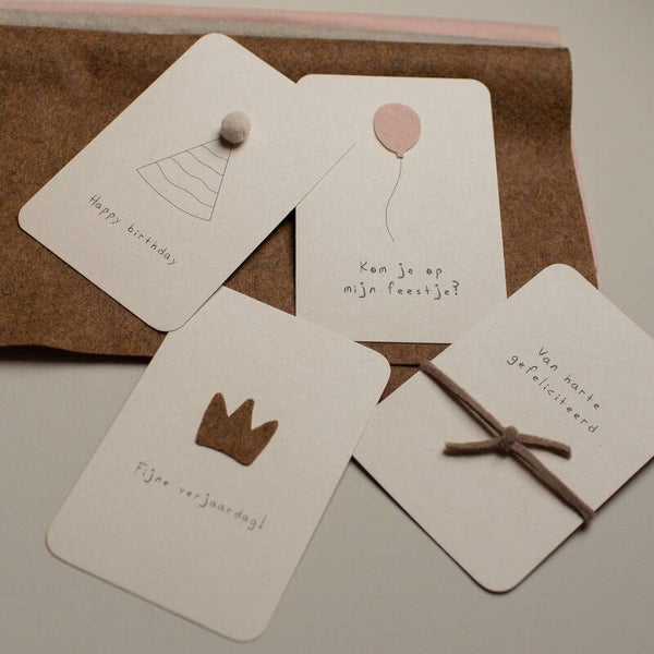 Wenskaart op eco papier, ronde hoeken en een vilten ballonnetje. Inclusief envelop.10x15 CM